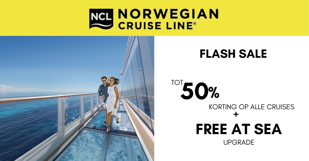 Boek nu uw cruise met Norwegian Cruise Line en profiteer van cruises met Hoge kortingen en upgrade op het Free at Sea pakket.