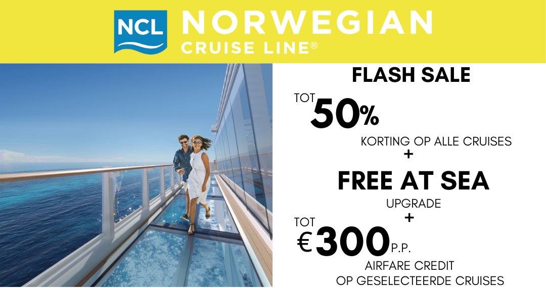 Boek nu uw cruise met Norwegian Cruise Line en profiteer van cruises met Hoge kortingen, upgrade op het Free at Sea pakket en airfare credit.