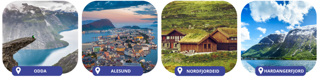Een bezoek aan Odda, diepgelegen in het Hardangerfjord, ontdek Alesund, naar de top van Aksla en cruise door het Nordfjord