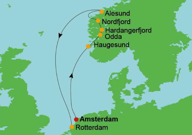 U geniet hier van prachtige vergezichten in de Fjorden en bijzondere bestemmingen. Geniet van de verfijnde keuken en gastvrijheid van Holland America Line.